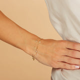 The handmade double chain bracelet with all its shimmer, colours and little charms is light and fits your wrist perfectly. Complete the look with the matching Nomad Necklace and Nomad Anklet. The gold bracelet length is 16cm extendable to 18cm.