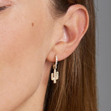 Emerald huggies earrings with cactus-shaped pendants