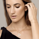 Our 14 karat gold huggie earrings feature handset diamond pave stones and are the ultimate essential for an every day sophisticated look.