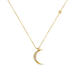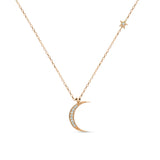 Diamond Crescent Moon and Star Necklace